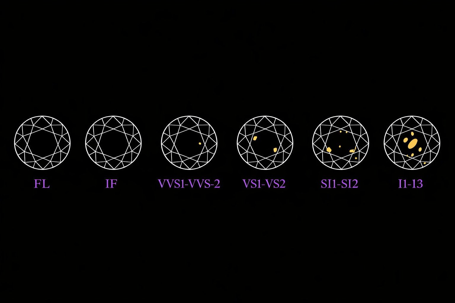 Le classement de la clarté d'un diamant dépend de la taille, de la couleur et de l'emplacement de toute inclusion ou imperfection, et est évalué à l'aide d'un grossissement 10x.