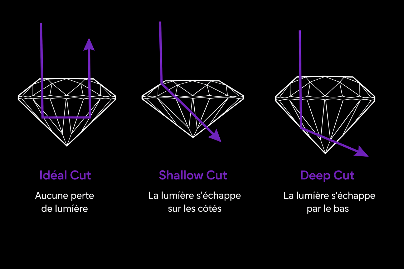 La coupe d'un diamant décrit la qualité des facettes et, selon nous, c'est l'un des détails plus important.